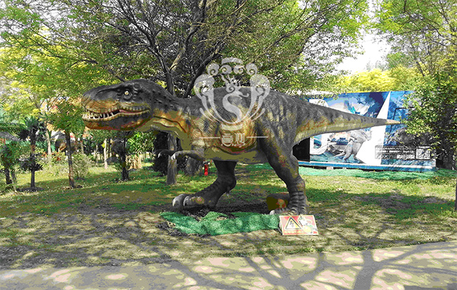 第二就是雕塑生物。他的制作工藝、材料分兩種,1、玻璃鋼材質,2、水泥雕塑。制作時還是需要鋼材作為生物的骨架,然后附上玻璃鋼、水泥雕塑的皮膚。這樣的生物可以做成不同的姿態,栩栩如生。但是他做不了機械運動。他就是一只固定的生物雕塑。