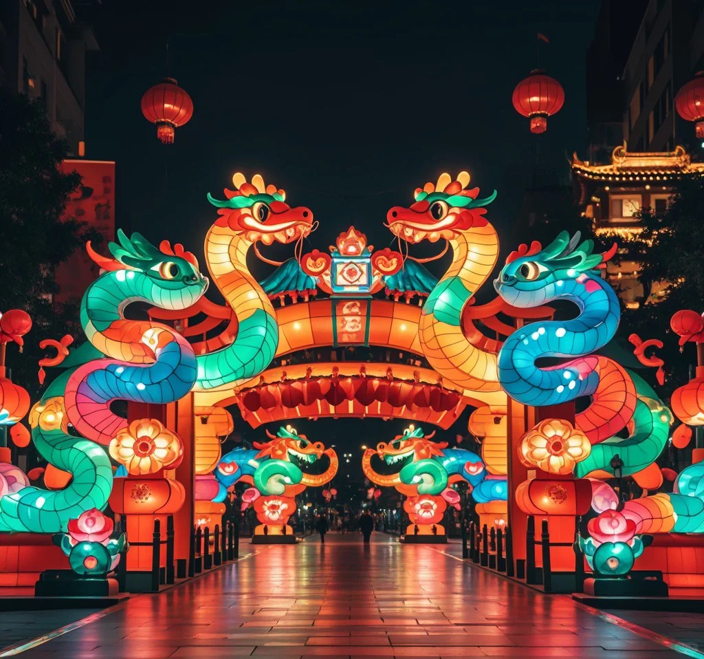 蛇年彩燈,不僅僅是一種裝飾,更是一種文化的傳承與表達。在中國傳統(tǒng)文化中,蛇被視為神秘、智慧和靈性的象征。這些彩燈以蛇為主題,既展現(xiàn)了人們對傳統(tǒng)文化的尊重與熱愛,又寄托了對新一年的美好祝福。在這五彩斑斕的燈光中,人們仿佛感受到了蛇的神秘力量,也感受到了新的一年所帶來的希望與活力。