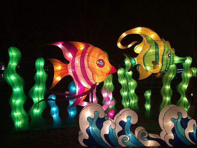 花燈,又叫彩燈,是我國各地普遍流行的裝飾性的傳統工藝品。花燈藝術是燈的裝飾藝術,是人們利用竹木、金屬、綾絹、綢緞、明珠、玉佩、絲穗、紙品、獸角、玻璃、羽毛、貝殼、麥稈、塑料等材料,根據形式美得法則或各地審美習慣、審美意識并綜合彩扎、裱糊、編結、刺繡、雕刻輔以剪紙,書畫等造型技藝設計制作的具有光亮的彩燈藝術。平日可用它烘托婚壽喜慶氣氛,到元宵燈節,它便是人們觀賞、娛樂、競技、競藝的佳品。
