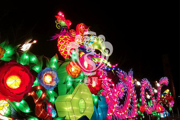 花燈都有觀賞娛樂價值,這里說的娛樂性的花燈是以趣味性、知識性、科學性、游藝性為主,寓教于樂。早在宋代以后,每到熱鬧的燈節,人們常在那些花鳥蟲魚、百態千姿的彩燈上,寫有包羅萬象的新奇謎語,吸引著男女老少,使他們苦苦冥想,達到娛樂的目的。這些寫有彩燈上的謎語,就稱為“燈謎”,寫有燈謎的花燈就屬于娛樂性花燈。在我國民間舞蹈和民間曲藝的百花園中,有不少是利用花燈形式進行舞蹈和演唱的,如商南花燈、吉安鯉魚燈、四川車燈、荊州滾燈等等。商南花燈,是一種古老而新鮮的民間曲藝形式,邊唱邊玩燈。玩的燈有滿架燈和半架燈。滿架燈四十八盞,其中有排燈一面,宮燈八對,其余為各種各樣的花燈,如雞等、羊燈、虎燈、螞蚱燈、西瓜燈、白菜燈等等。半架燈為其一半,但須排燈一面,宮燈四對。這些花燈伴著唱詞,具有濃郁的鄉土氣息和陜南的地方特色。在眾多的民間彩燈中,江西吉安的鯉魚燈別具一格。鯉魚燈形體小巧,頭尾能動,內裝電池照明,舞時輕盈灑脫,伴以嗩吶曲牌與打擊樂演奏,表演氣氛十分紅火熱烈。另外,文體活動中還有舞龍和北京特有的桶形宮燈風箏。舞龍,又稱龍燈。一種是布做的,不亮;另一種是分節龍,一般是七節或九節,最長的有三十多節,用竹扎紙糊,每節裝上燈或點上明火。舞龍者的動作,要求非常協調,才能顯示一種龍的整體,如果在晚上觀看,更為壯觀。桶形宮燈風箏,一般用絹制成,有六面體,八面體之分,燈的每扇上畫有山水、人物、花卉以及篆隸字等。所以它即可以放飛,有可以作為室內的裝飾陳設。還有一些用電動馬達設計制作的游藝玩具燈,例如貓撲鼠燈、豬八戒吃西瓜燈。貓捕鼠的敏捷動作,豬八戒洋洋自得的神態,津津有味地咀嚼,簡直惟妙惟肖,妙趣橫生。以上四類花燈,它們的社會作用和價值雖各有側重,但又往往交錯,相得益彰,有時也難截然分開。
