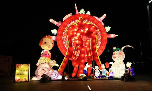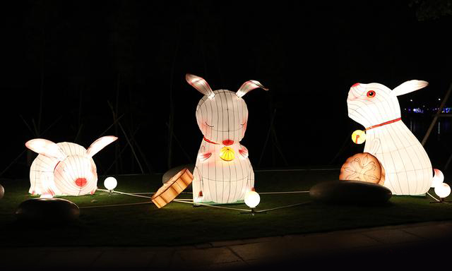 萌萌噠玉兔草地上"玩耍"。一組以中秋玉兔作為設(shè)計元素的彩燈,與中秋月餅相結(jié)合,在農(nóng)歷八月的晚上,仿似給人間帶來節(jié)日的祝福。