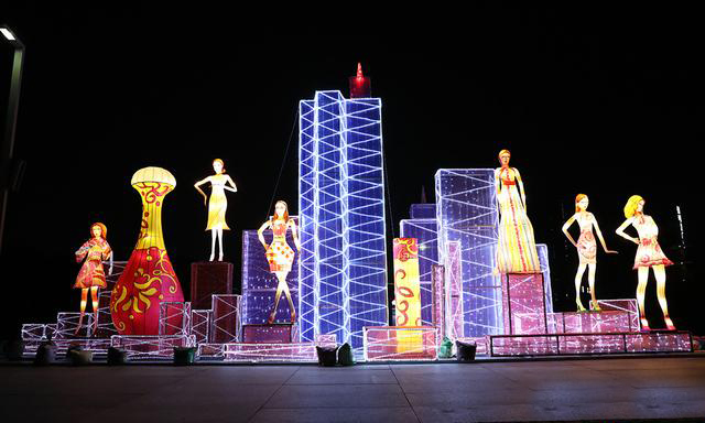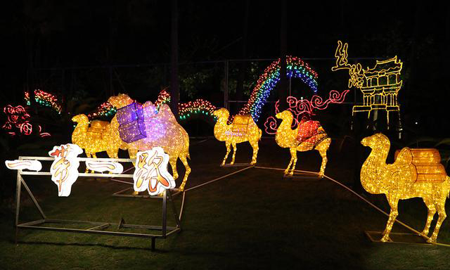 以"一帶一路"為主題,重現(xiàn)絲綢之路的風(fēng)情,時尚的光雕顏色豐富多彩,造型獨特,十分引人注目。